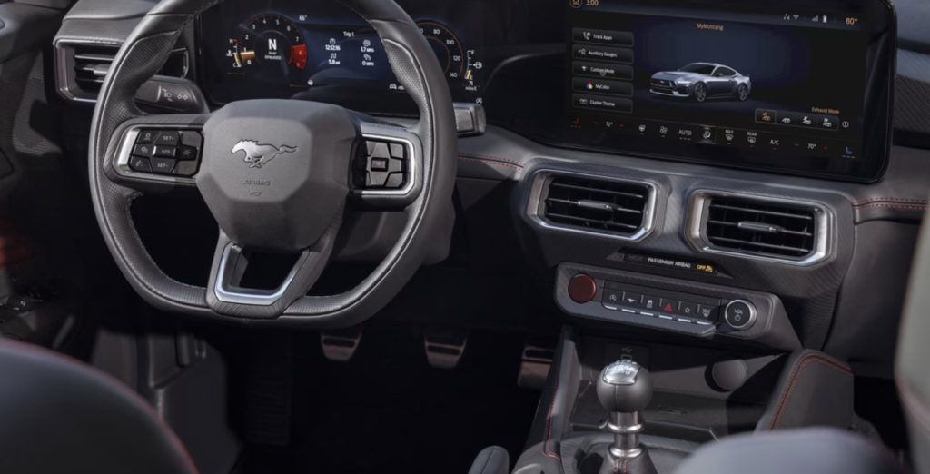અંદરથી Mustang Pickup 2026 સંપૂર્ણ driver-focused લાગે છે.